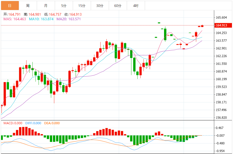 预期交易范围:在164.35支撑和165.55阻力之间。