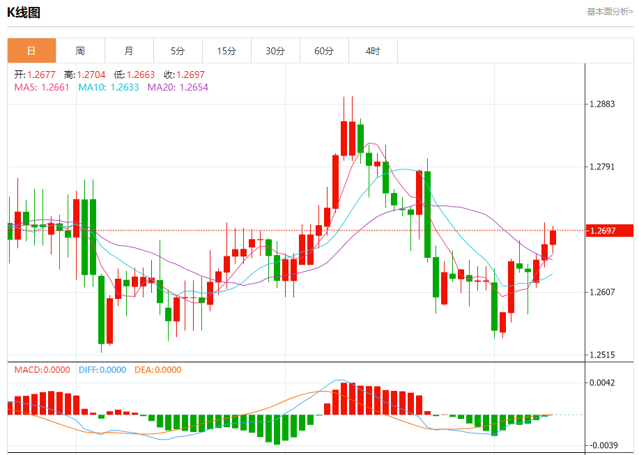 周三盘中,英镑/美元报1.2700,涨幅0.17%。