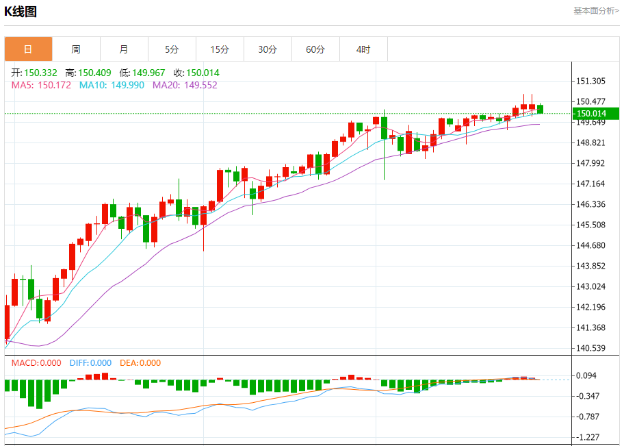 周五盘中,美元/日元报150.002,跌幅0.25%。