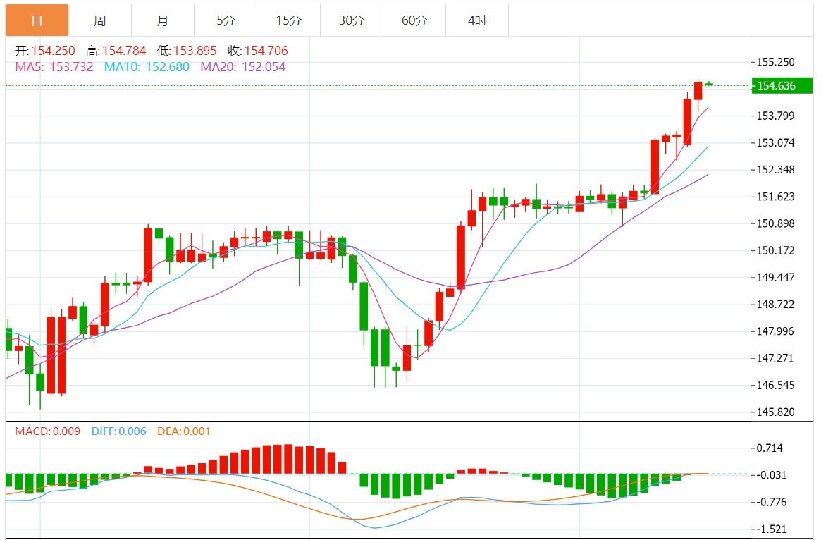美元/日元连续第二个交易日扩大跌幅,周四亚洲时段交投于154.30附近。美元(USD)的下跌对美元/日元货币对施加了压力。日元(JPY)可能得到了日本贸易平衡在3月份转为顺差的支撑。 |