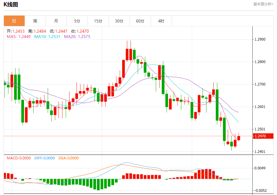 周四盘中,英镑/美元报1.2471,涨幅0.14%。