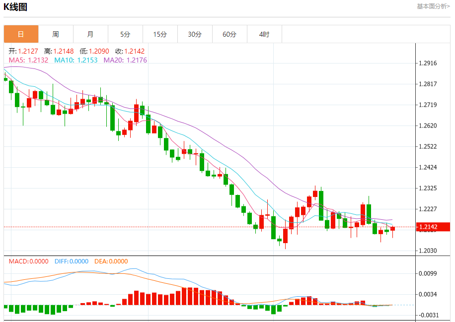 周一盘中,英镑/美元报1.2138,涨幅0.14%。