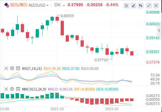 周二纽元/美元温和下跌,因为市场情绪倾向於追捧美元,导致纽元创下本周新高(尽管是小幅新高)0.5860附近後,从开盘价0.5840附近回落。 纽西兰就业数据意外萎缩,而且纽储行金融稳定报告(FSR)也没有显示出什麽值得投资者关注的内容,因此纽元/下行压力将持续到周三。 纽西兰第三季就业人数季率意外收缩,录得-0.2%,上一季为成长1%,低於市场预期的0.4%。尽管不如预期,纽西兰失业率仍达到预期,为3.9%,而第二季为3.6%,因此整体市场效应受到抑制。 纽储行行长阿德里安-奥尔(AdrianOrr)发表纽储行最新的《金融稳定报告》(FSR),纽储行行长指出,随着新西兰家庭和企业继续努力应对更高的偿债成本,重大风险依然存在。纽西兰金融体系仍在适应利率上升的环境,纽储行乎不太可能在短期内提高利率,因为纽储行仍对资产品质的潜在下降或恶化保持警惕。 市场现在将目光转向周三联准会利率决议,市场预计联准会将维持利率不变,但由於美国经济数据坚挺,通膨指标持续走高,拒绝随市场预期下降,投资人对今年联准会最後一次升息25个基点的押注正在上升。 纽元/美元技术展望 纽元/美元继续在徘徊於低点附近,但纽元跌幅有限,尽管美元全盘走强,但该纽元/美元仍难以进一步跌破0.5800。 看涨反弹仍面临巨大的技术阻力,50天简单移动均线(SMA)已跌至0.5900关口区域,纽元/美元将继续试探2023年震荡区间下沿水平。