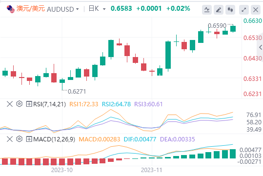 澳元周一努力延续第三个交易日的连涨势头。澳元/美元在三个月高点0.6590下方徘徊,并从美元的负面基调中获得上行支撑。这种负面情绪受到了喜忧参半的标普全球PMI数据的影响,推动了澳元的走强。 在中国房地产市场继续刺激的消息推动下,澳大利亚元经历了一个积极的市场情绪的反应。这改善了投资者的情绪,反映在股市的积极表现上。此外,中国人民银行(PBoC)已发布通知,加强对民营企业的金融支持。这种全面的支持包括帮助私营企业上市和融资、兼并和收购以及重组。 在有关中国工业利润年初至今(YTD)数据公布后,澳元面临下行压力,工业利润跌幅收窄至7.8%,较之前的9.0%有所改善。10月份出现了积极的转变,工业企业的利润增长了2.7%,与此前观察到的11.9%的下降形成了对比。 中国人民银行承诺增加私营企业的债券发行,并积极鼓励贷款机构不要削减或暂停对面临暂时困难但展示出竞争技术的私营企业的贷款。 此外,澳大利亚储备银行(RBA)行长Michele Bullock最近的鹰派言论为澳元对提供了支持。布洛克强调,通胀挑战越来越多地由国内需求驱动,强调货币政策收紧是对需求驱动型通胀的适当回应。 随着美国国债收益率显示出改善,美元指数(DXY)试图止住最近的跌势。与此同时,有人猜测美国美联储(Fed)明年可能会放松货币政策。然而,美联储官员上周的言论暗示,有必要进一步收紧政策。他们还强调,决策将取决于即将到来的数据,以采取适当措施解决通胀问题。 对于澳大利亚和美国来说,这是经济战线上繁忙的一周。澳洲联储布洛克的讲话、零售销售和通胀数据可能会受到澳大利亚的密切关注,为潜在的货币政策考虑提供见解。在美国,国内生产总值(第三季度)、核心PCE价格指数和ISM制造业采购经理人指数将是关键指标。 澳元/美元技术分析 澳元/美元周一徘徊在0.6580水平附近,略低于周五触及的三个月高点0.6590,这与0.6600水平的心理阻力相符。下行方面,位于0.6550的七日指数移动平均线(EMA)可能会成为关键支撑,随后是位于0.6513的23.6%斐波纳契回撤。如果该货币对跌破这一水平,它可能会测试0.6500水平的主要支撑。 |