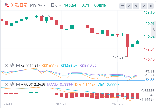 12月11日,周一欧市盘前,美元/日元徘徊在附近。 有报道称,市场对日本央行行长植田和男上周的言论的解读是断章取义,其讲话并不意味着调整有关政策时机的信号。此外,国内生产总值疲弱表明日本经济依然脆弱,暗示市场对即将加息的预期可能被夸大了。与此相反,美国每月就业数据向好使交易员们押注美联储可能要到明年5月才会启动一系列降息行动。这因此又为美元提供了一些支撑,使周一美元/日元在上周五自142.00点中档反弹的良好势头基础上,连续第二个交易日获得了积极动能。 与此同时,投资者似乎相信日本央行数十年的超低利率政策可能即将结束。这一点,加上市场担忧全球经济衰退前景加剧,可能会继续有利于日元的相对避险地位,并阻止美元/日元明显上涨。本周关键数据/事件风险来临之前,交易者可能也会避免展开激进的方向押注。周二将公布最新的美国消费者通胀数据,随后将于周四公布至关重要的美联储货币政策决定。这将在影响近期美元波动方面发挥关键作用,并为美元/日元提供一些明显推力。因此,在确认美元/日元已经触底之前,谨慎的做法是等待出现强劲的跟进买盘。 路透社援引三位熟知内情的消息人士话报道称,日本央行行长植田和男上周的言论并不意味着政策即将转向。 加上有数据显示,日本第三季度经济萎缩的幅度比最初估计的要大,年率为2.9%,这被视为会打压日元。 美国劳工统计局上周五发布报告称,11月美国经济新增就业岗位19.9万个,而前值为15万个,预期为18万个。报告的其他分项数据显示,尽管劳动力参与率从62.7%上升至62.8%,但失业率从10月的3.9%降至3.7%。以平均时薪变化衡量的薪资通胀年率符合一致预期,持稳于4%。美国就业数据向好迫使投资者降低了对美联储最早于2024年3月降息的预期。 投资者现在期待着周二最新的美国消费者通胀数据,这可能会影响市场对美联储明年推出一系列降息的预期。美联储还将在周三为期两天的政策会议结束时宣布政策决议,预计美联储将按兵不动。 与此同时,市场焦点将集中在所谓的"点阵图"和美联储主席杰罗姆-鲍威尔在会后新闻发布会上的言论上。 美元/日元技术分析 从技术角度看,美元/日元上周在非常重要的200日简单移动均线(SMA)下方表现出一定的韧性。随后的走势超过了近期从152.00附近(即年度最高点)下跌的23.6%斐波那契回撤位,这有利于看涨交易者。不过,周一亚洲交易时段,这一势头在38.2%斐波那契回撤位之前出现了停顿,如果这一回撤位被清除,现货价格将重新回到146.00点。这一势头可能会进一步扩大,但更有可能继续遇阻50%菲波纳契位即146.80附近。 同时,日线图震荡指标深陷消极区域,支持在更高水平出现一些卖盘的前景。也就是说,145.00心理关口现在可能会构成支撑,然后依次是50%菲波纳契位144.55-144.50区域和144.00整数关。如果不能守住上述支撑位,美元/日元可能会加速下滑,进一步跌至61.8%菲波纳契位143.00下方。其后是200日均线(目前位于142.35区域附近)、142.00标志和141.60区域,即上周四触及的数月低点。若跌穿该水平出现一些后续卖盘将被视为看跌交易者的新触发点,并为美元/日元近期进一步贬值走势铺平道路。 |