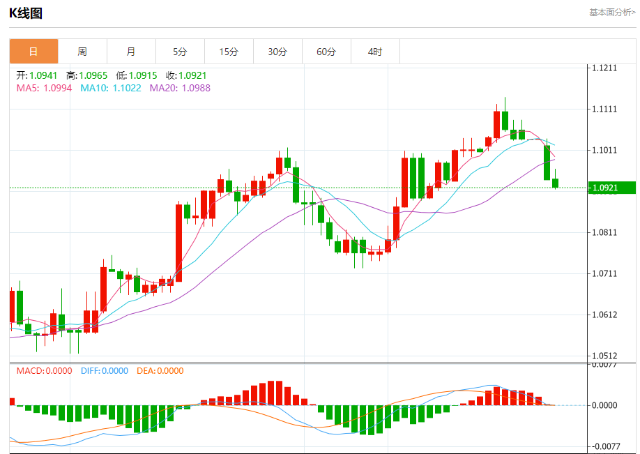 周三盘中,欧元/美元报1.0920,跌幅0.16%。