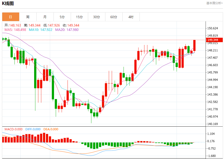 周四盘中,美元/日元报149.354,涨幅0.79%。