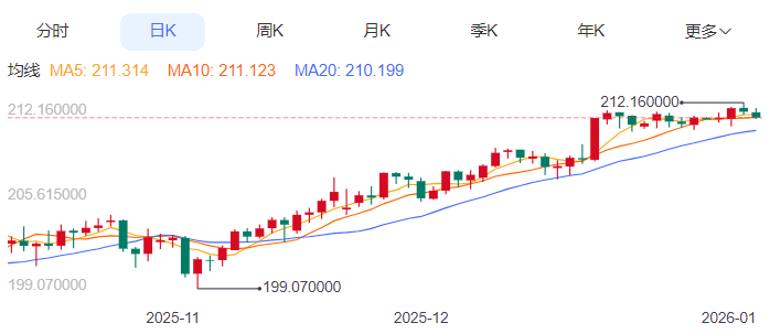 周三,英镑/日元下跌0.17%至211.11附近。