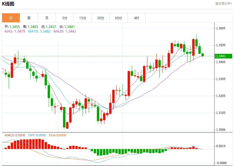 支撑位:1.3430 1.3400 1.3370