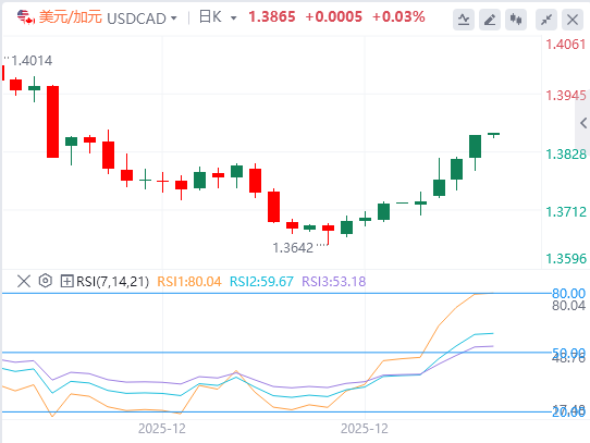 1月8日,周四亚市盘中,美元/加元连续第五天连胜,徘徊在1.3860附近。随着美国总统唐纳德·特朗普示意恢复委内瑞拉原油进口,商品挂钩加元(CAD)面临挑战,引发对供应增加及加拿大石油需求竞争加剧的担忧,货币对升值。 不过,总理马克·卡尼表示,即使委内瑞拉出口增加,加拿大原油仍低风险且具竞争力。他的办公室表示,卡尼将于1月13日至17日访问中国,寻求在美国贸易政策不确定的情况下,将加拿大出口多元化,远离美国。 加拿大经季节调整的艾维采购经理人指数(PMI)从11月的48.4升至2025年12月的51.9,超过预期的49.5,预示着在一个月收缩后重返扩张。加拿大10月份贸易收支数据将于周四公布。 美元(USD)保持稳定,数据显示美国经济环境脆弱,预计周五关键就业报告将发布,市场情绪受限。美国非农就业人数(NFP)预计12月将新增55,000人,低于11月的64,000人。 供应管理协会(ISM)周三报告称,美国服务业PMI从11月的52.6升至12月的54.4。这一数字高于预期的52.3。自动数据处理(ADP)就业变化显示,12月新增41,000个岗位,而11月则为29,000个,之前修正后减少了29,000个。这一数字略低于市场预期的47,000辆。 |