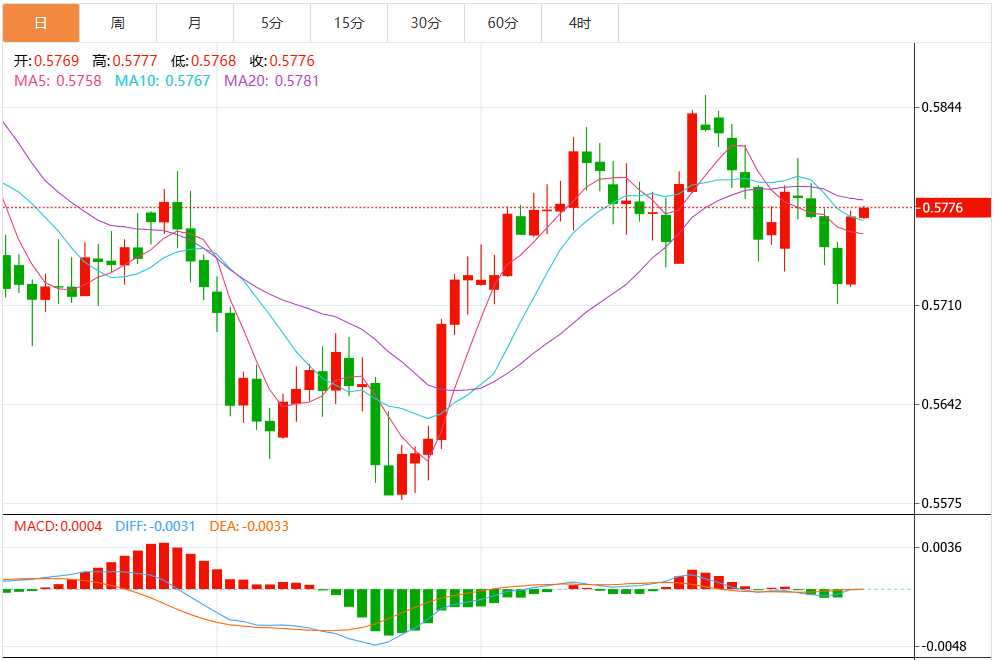 周三欧盘,纽元在周三小幅上涨,但仍在周二的区间内交易,向上的尝试被限制在0.5750下方,外汇波动性较低。 来自中国的乐观贸易余额数据,作为新西兰的主要贸易伙伴,未能为该货币对提供任何显著支持。 |